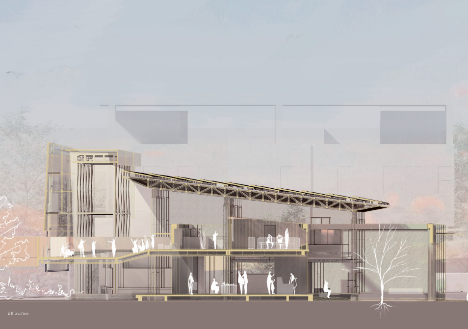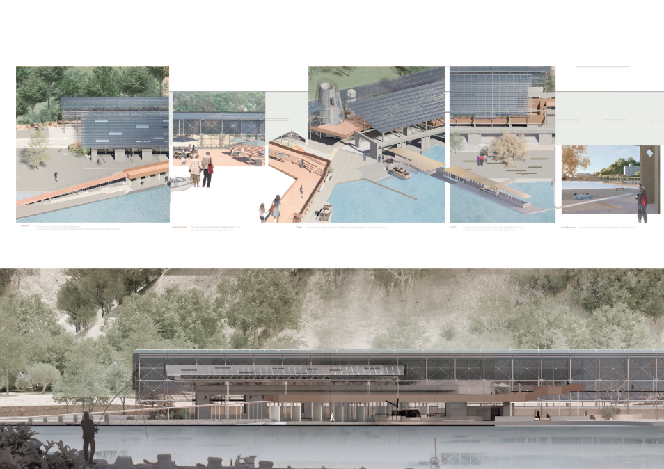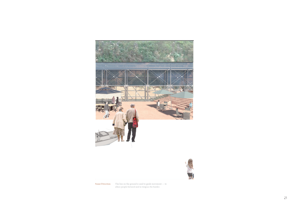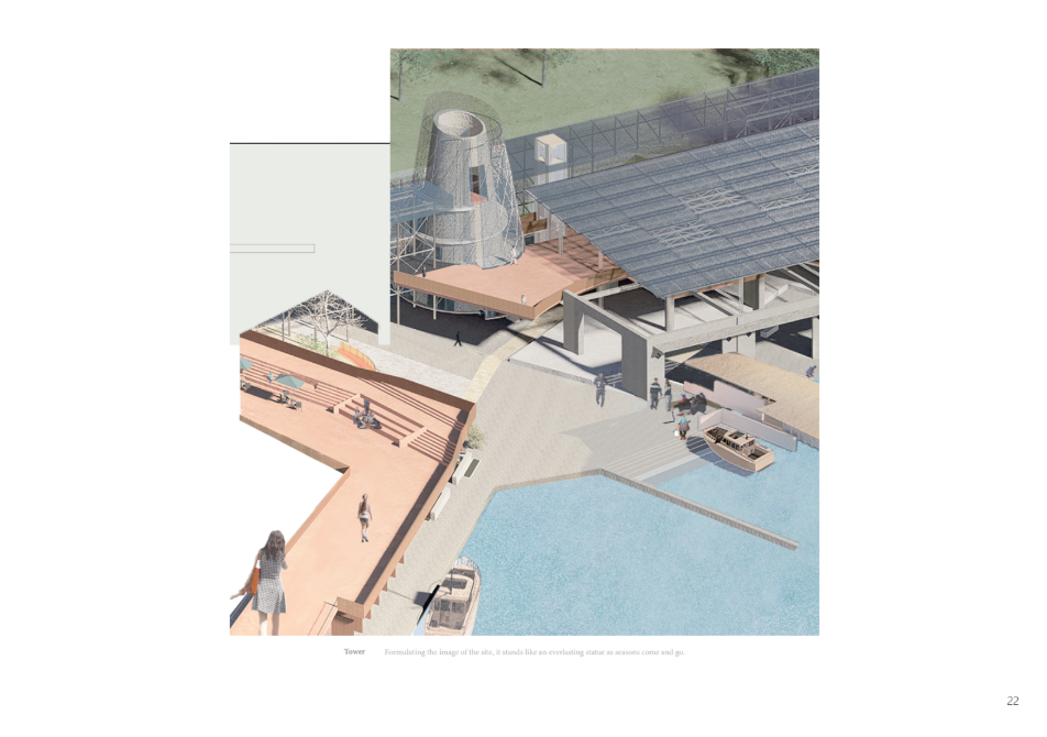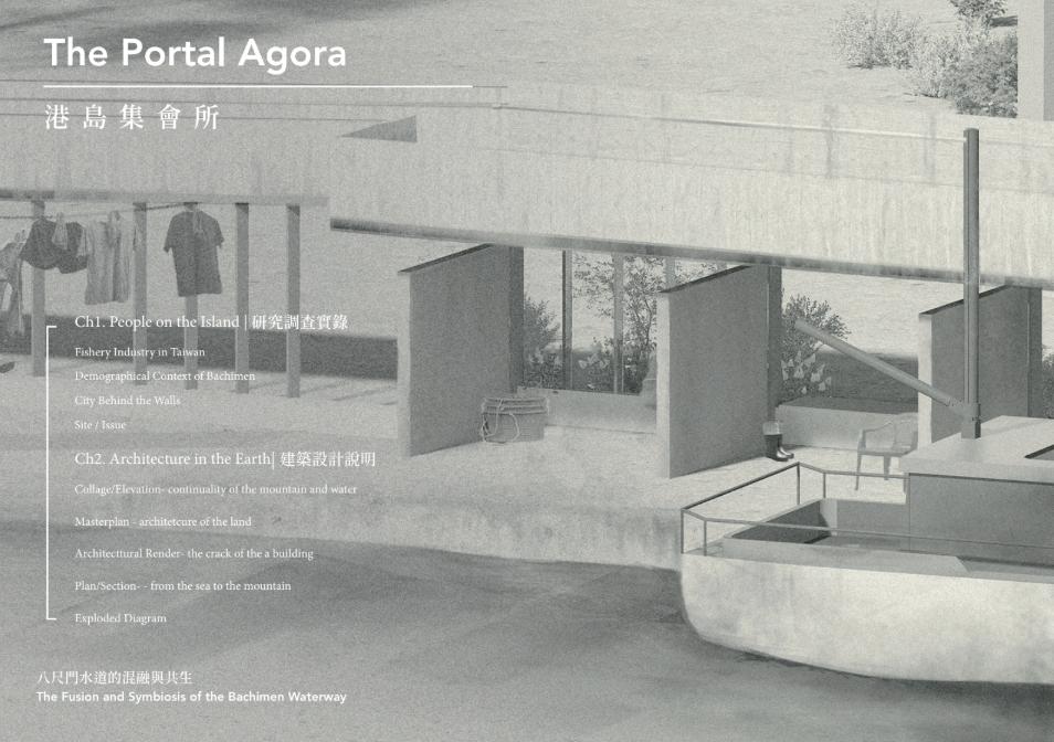 The story of the land unfolds through the daily lives of people and industry. As cities continuously reshape themselves to embrace international migration and activity, this project begins with the transformation of an existing pier warehouse. Through landscape and architecture, it breaks down the barrier between the industrial waterfront and the city. In the dialogue between old and new structures, a shared space emerges for diverse communities—shaped with minimal architectural interference, yet resonating with the coexistence of mountain and sea through shells and openings.