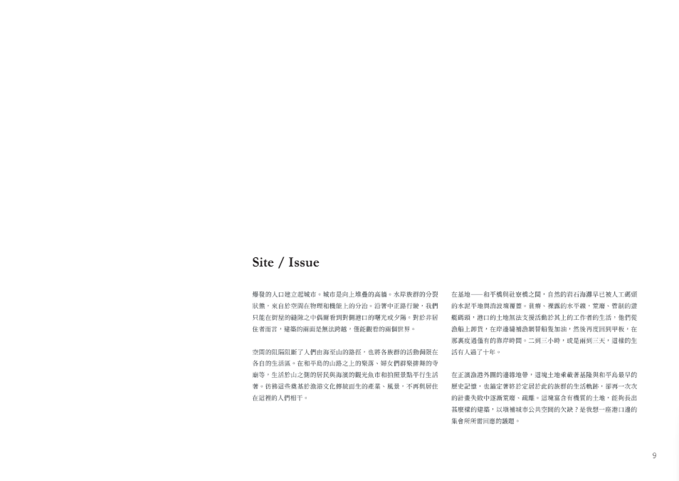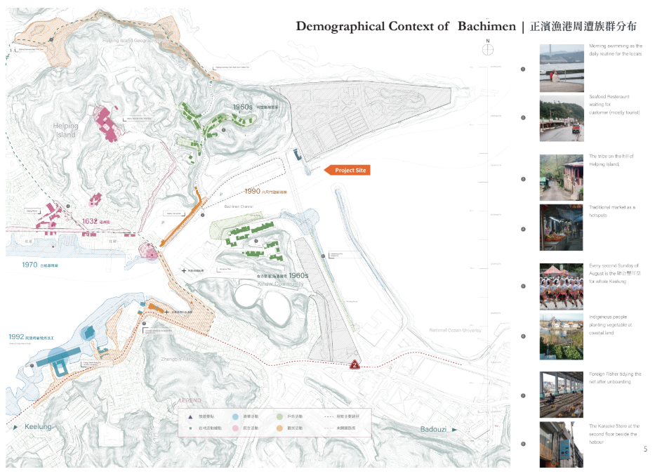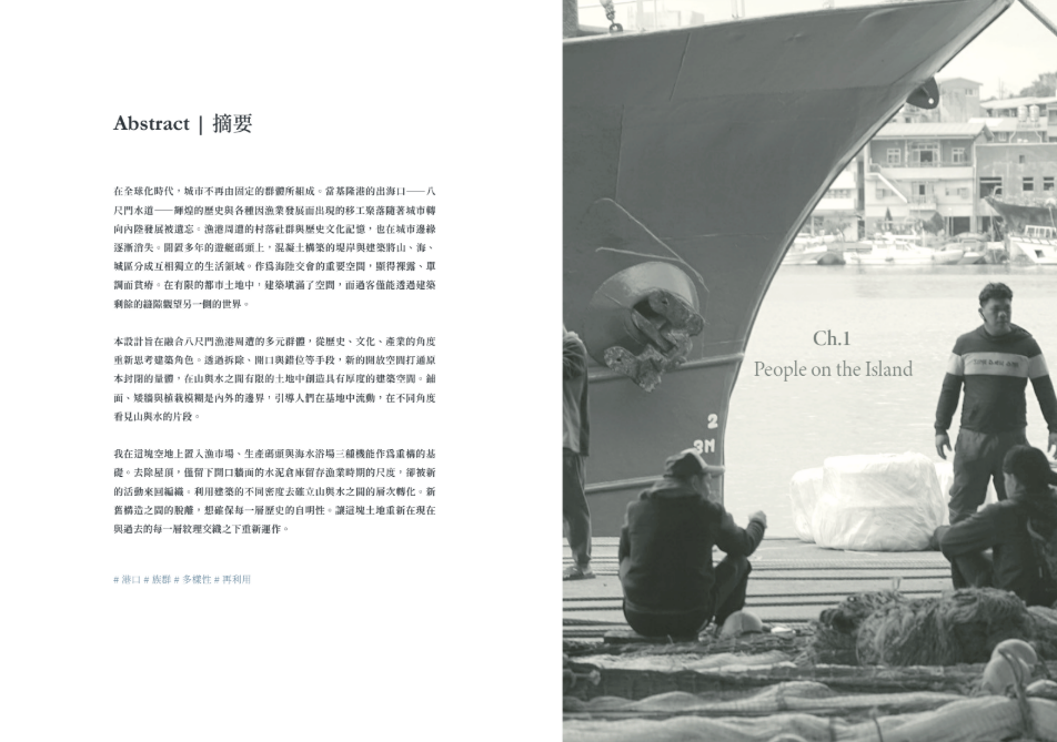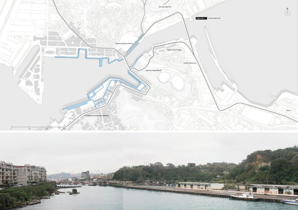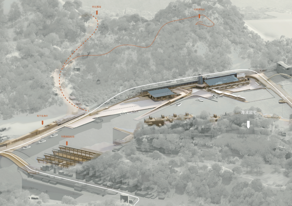 土地的時間線隨人與產業延展,城市於飄蕩與變動中持續接納新族群與活動。設計從既有碼頭倉庫改造出發,以景觀與建築介入突破水岸與城市的隔閡,以新舊構造的縫隙形構族群共享的場域,回應多元共存的山海關係。